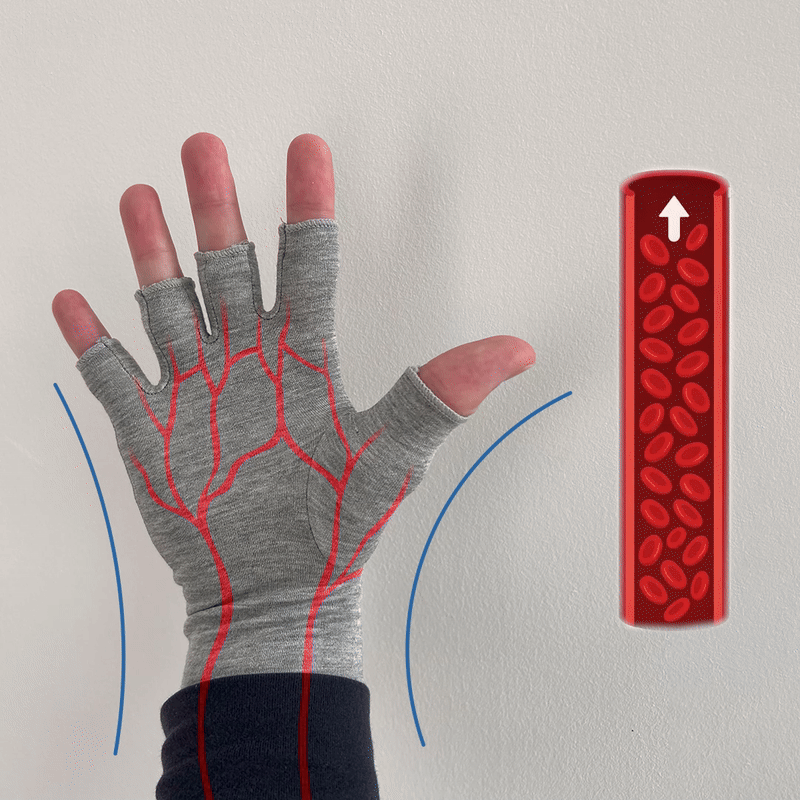 Det er præcis derfor, vi har valgt bambus. I modsætning til syntetiske materialer regulerer bambus naturligt temperaturen og transporterer fugt væk. Du får terapeutisk varme – uden den svedige og kløende fornemmelse fra traditionelle kompressionshandsker.