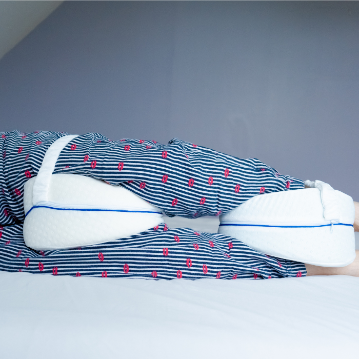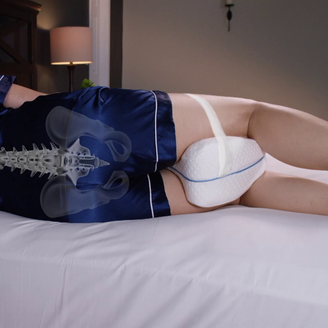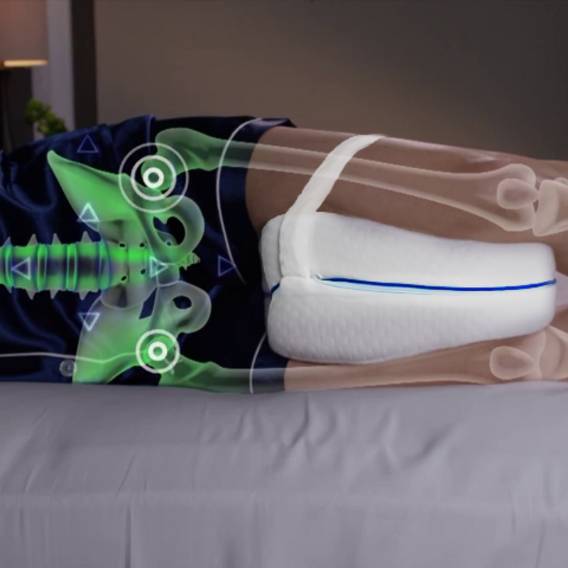 Med denne pude mellem lårene opnår du straks en sund og behagelig stilling – uden ubehag.