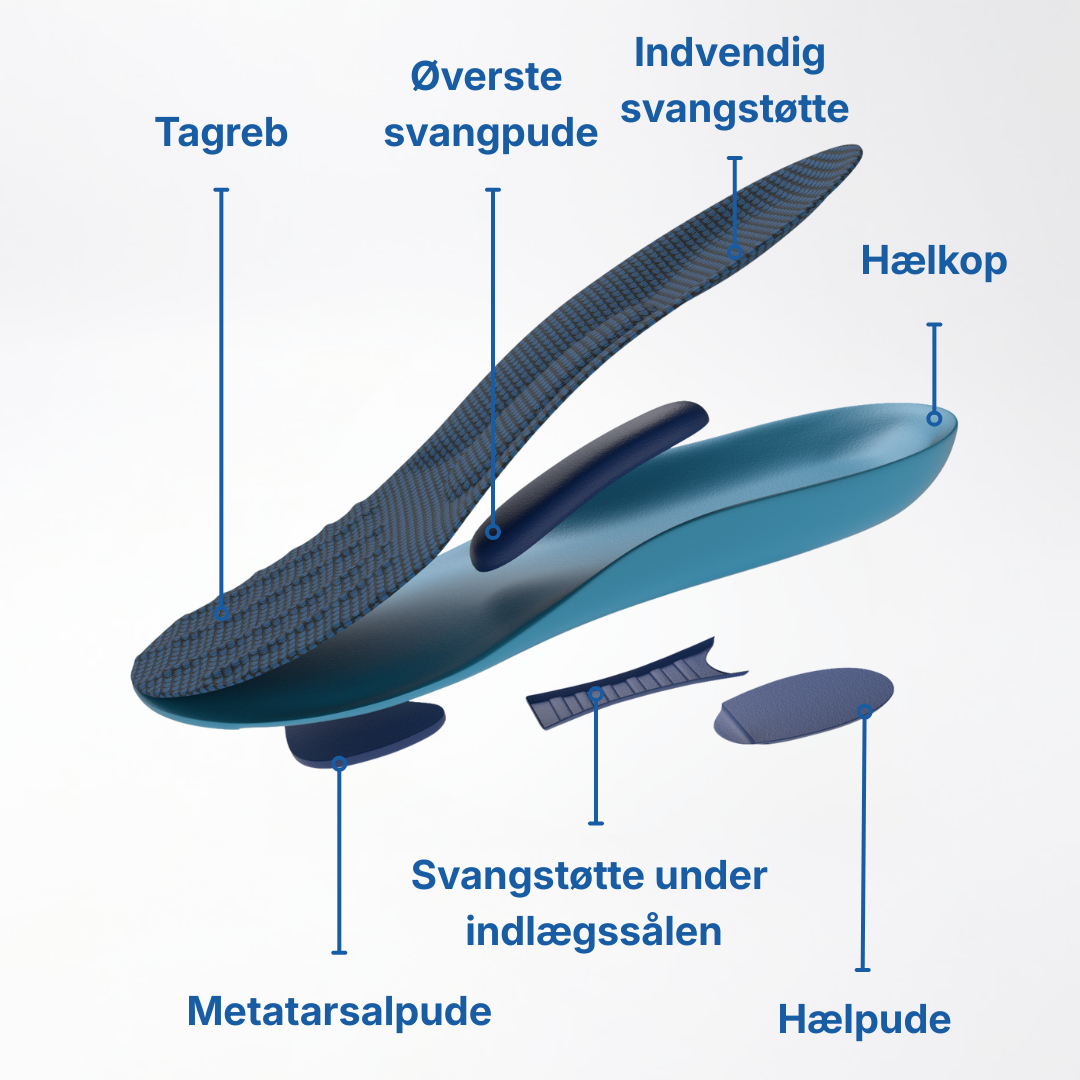 Indlægssålerne passer nemt i alle typer sko og giver en mærkbar komfort allerede efter få timers brug.