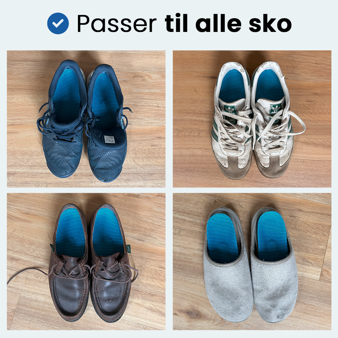 Indlægssålerne passer nemt i alle typer sko og giver en mærkbar komfort allerede efter få timers brug.